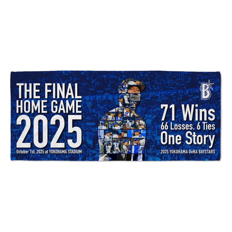 本拠地横浜スタジアムで2025年の最終戦を迎えました。最終戦に出場した全選手のプレーシーンを三浦監督のフレームに収めたデザインのハイライトグッズが登場です。チームが駆け抜けた71勝66敗6引き分けは,すべて2025年のストーリーです。