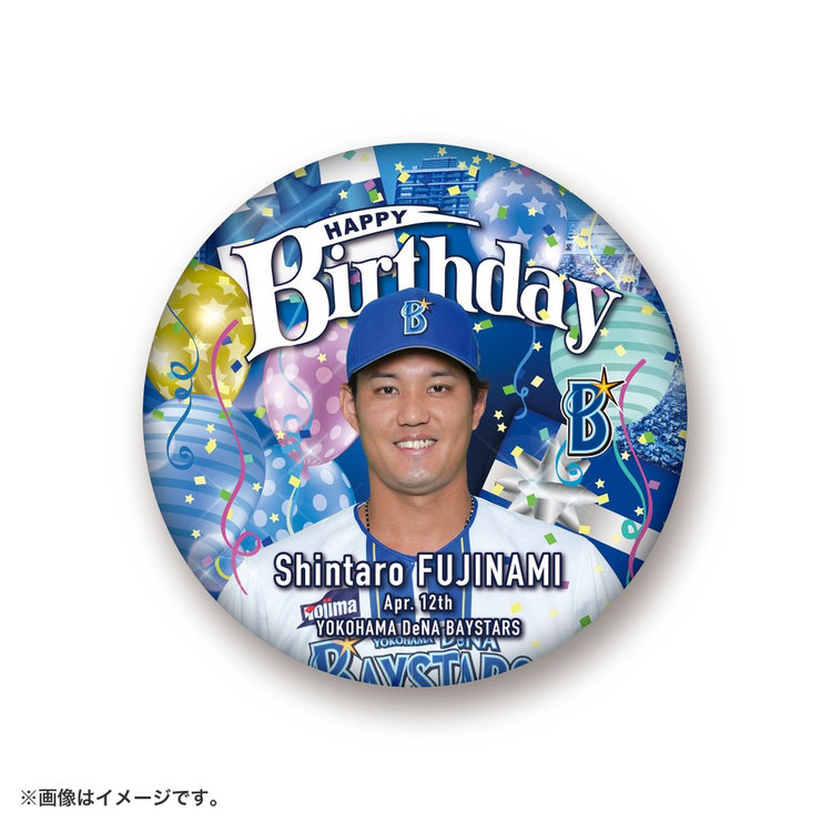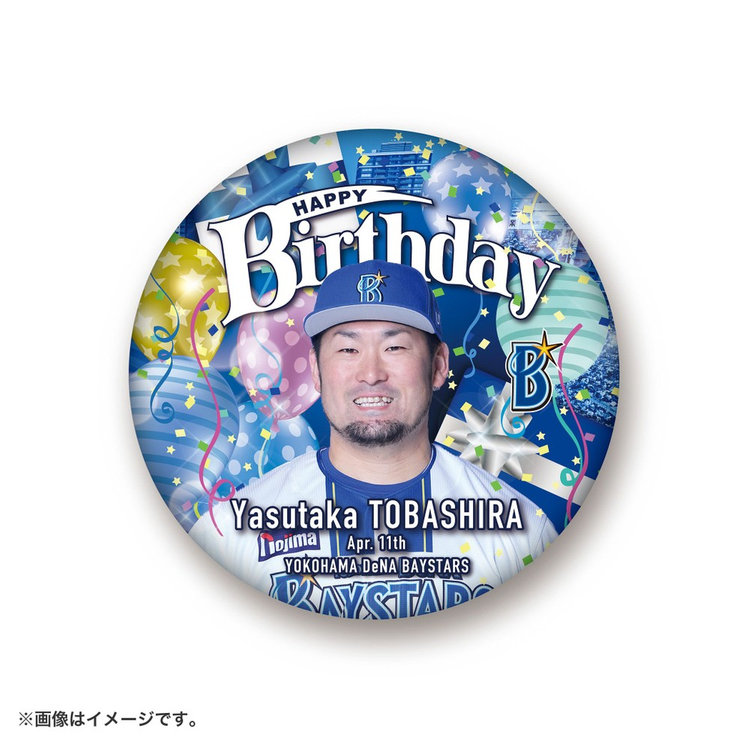 選手のお誕生日を祝う特大缶バッジです。