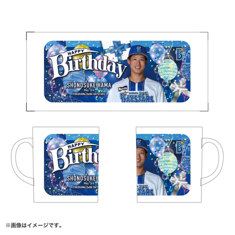 選手のお誕生日を祝うマグカップです。
