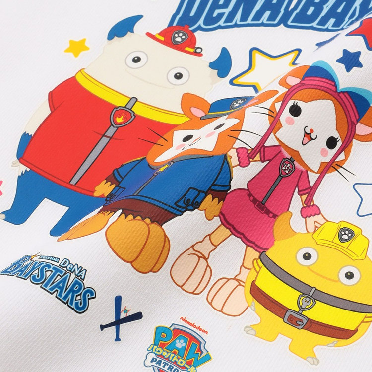 DB.スターマン,DB.キララ,BART,CHAPYが「パウ・パトロール」のコスチュームを着用したデザインのスウェットクルーです。