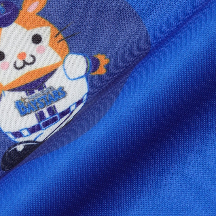 「BAYSTARS」の文字から覗くマスコットたちがかわいいデザインの速乾ドライTシャツです。