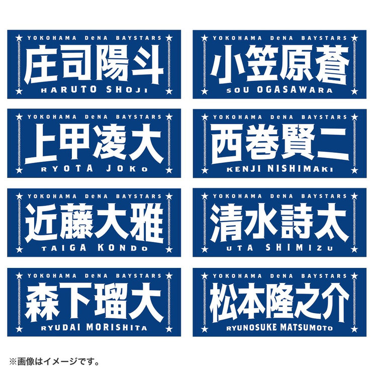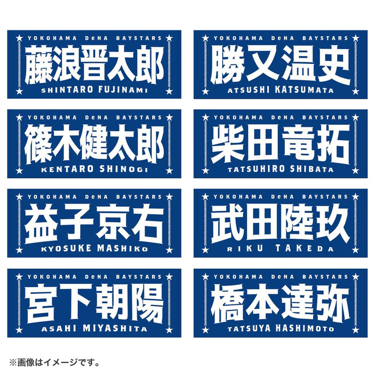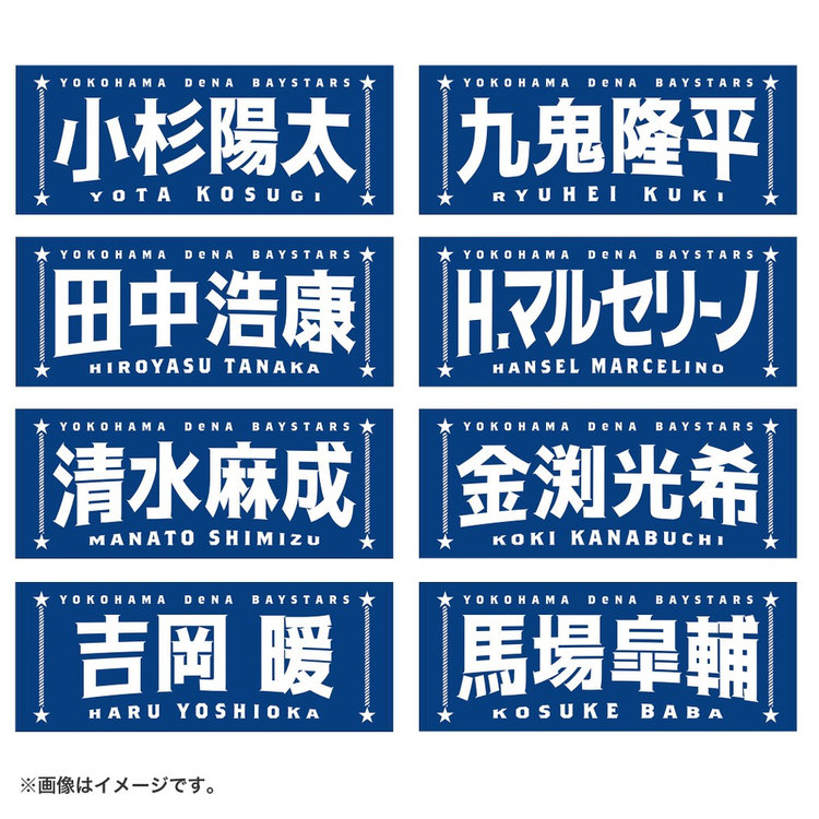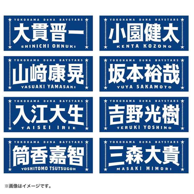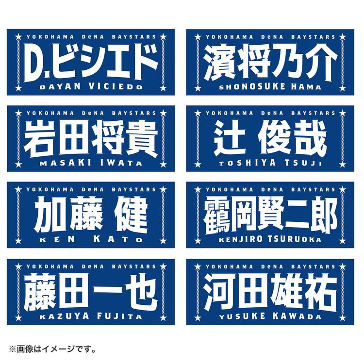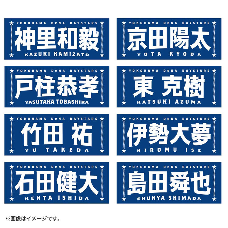 今回は名前に曲線をつけることで躍動感を演出し,よりエキサイティングに盛り上がる試合の雰囲気を文字で表現しました。両サイドには港町横浜からイメージするロープや星をあしらい,シンプルな中にもベイスターズらしさのあるポイントを追加しています。