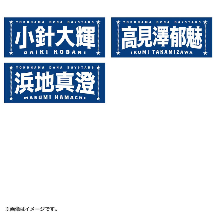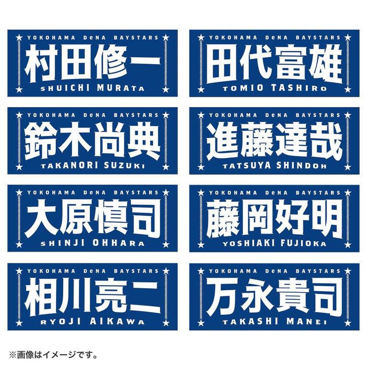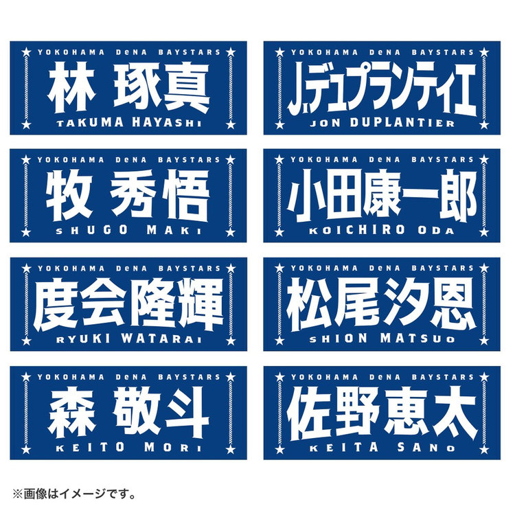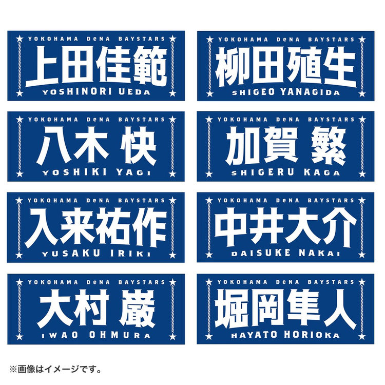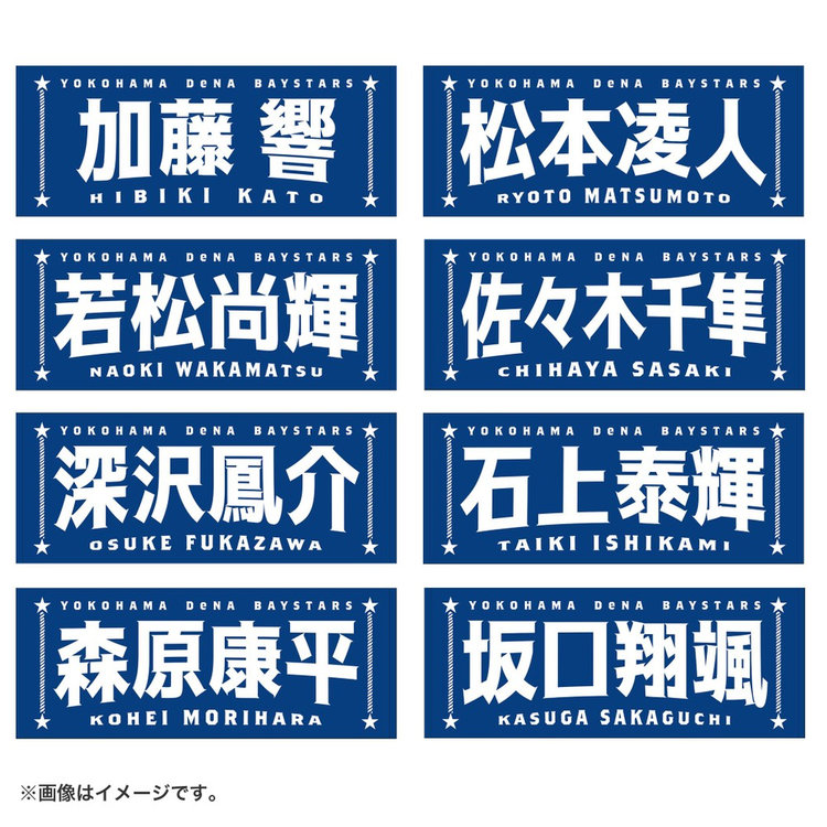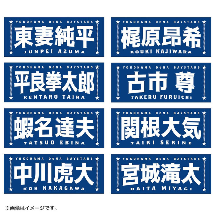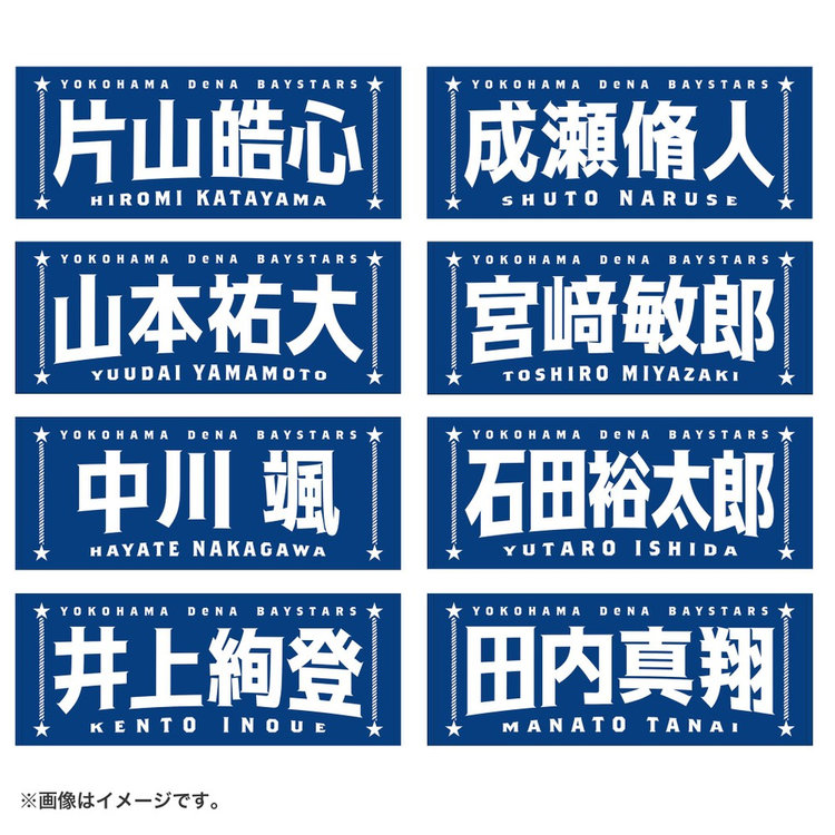 今回は名前に曲線をつけることで躍動感を演出し,よりエキサイティングに盛り上がる試合の雰囲気を文字で表現しました。両サイドには港町横浜からイメージするロープや星をあしらい,シンプルな中にもベイスターズらしさのあるポイントを追加しています。