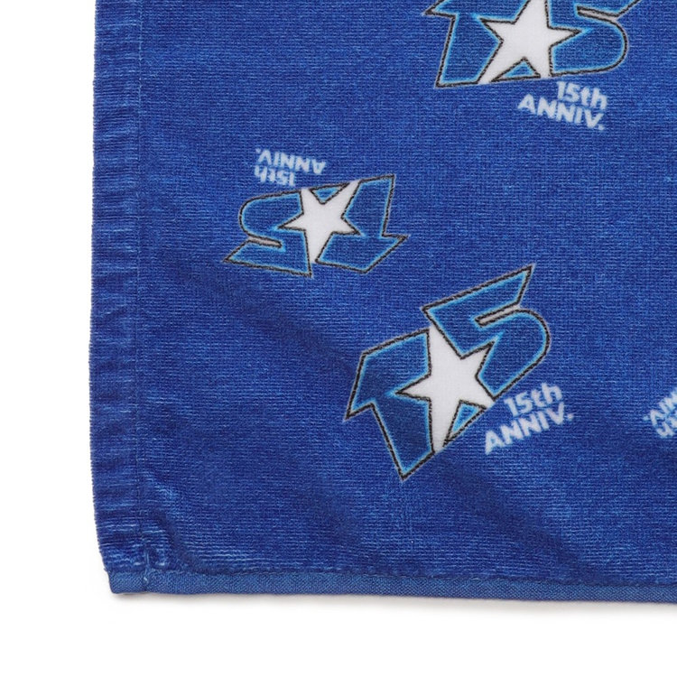 15周年ロゴ柄にチームロゴが大きくプリントされたフェイスタオルです。