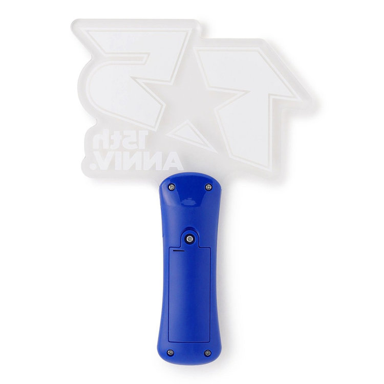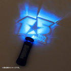15周年ロゴのアクリルダイカットライトです。暗闇で青く光ります。